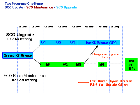 This option is for customers who want early access to new operating system features. This optional service is available for UnixWare 7.1.4, OpenServer 5.0.7 and later releases of those platforms. It is fee-based and requires an additional license for each system covered by the upgrade option.