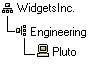 In the example below, the computer "Pluto" is located in the Engineering Organizational Unit, which is located in the Widgets, Inc. Organization.