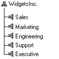 The previous example shows a very simple directory with an Organization object as the topmost object in the directory tree. Below the Organization object are five Organizational Unit objects.