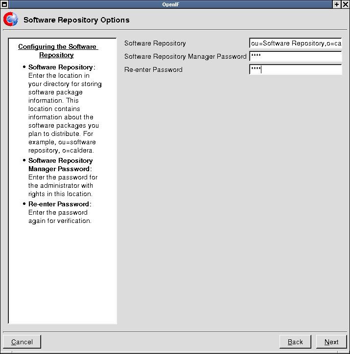 Software Repository Manager Password | Enter the password for the administrator with rights in this location. |