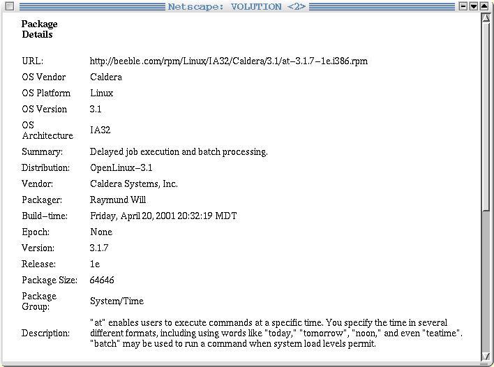 The SRD also checks for Caldera Volution Online requests to process. Caldera Volution Online is Caldera's new Internet-delivered software management service. Caldera Volution Online manages Linux systems by providing alerts, information, and software updates to keep your VM Server and VM Client systems up-to-date, secure, and reliable.Volution Manager provides integration with Caldera Volution Online through the Volution Manager Management Console (VM Management Console).