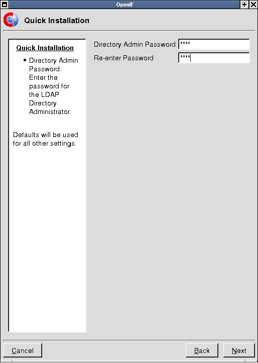 Enter the Directory Administrator's name and password information and click Next. See Table 2-6 for details.