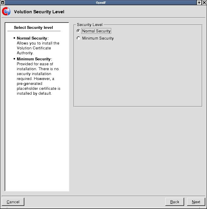 Volution Manager provides X.509 certificate-based security. Select your security level and click Next. See Table 2-10 for details.